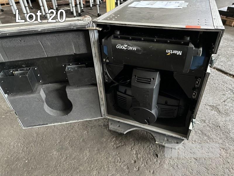 2 x MARTIN MAC 2000 PROFILE II MOVING HEAD LIGHTS, IN MOBILE ROAD CASE, 118 x 59 x 70cm