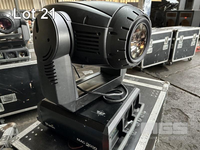 2 x MARTIN MAC 2000 PROFILE II MOVING HEAD LIGHTS, IN MOBILE ROAD CASE, 118 x 59 x 70cm