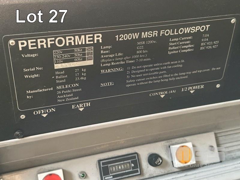 SELECON PERFORMER 1200W MSR FOLLOWSPOT WITH SPARE LAMP & TRIPOD