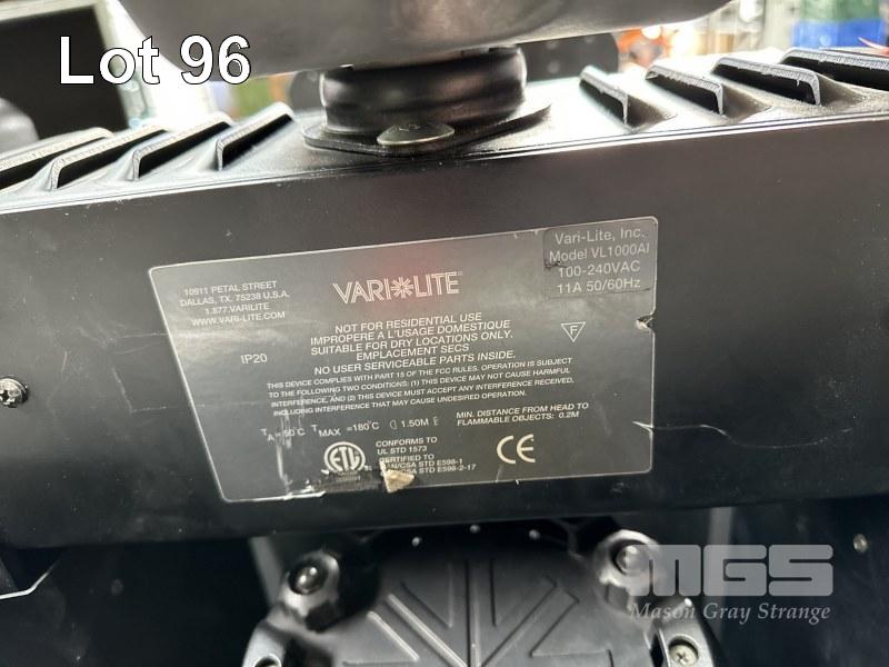 2 x VARI-LITE VL1000AI MOVING HEAD STAGE LIGHTS, 2 x POWER SUPPLIES, VL1000APS WITH MOBILE ROAD CASE, 96 x 58 x 74cm