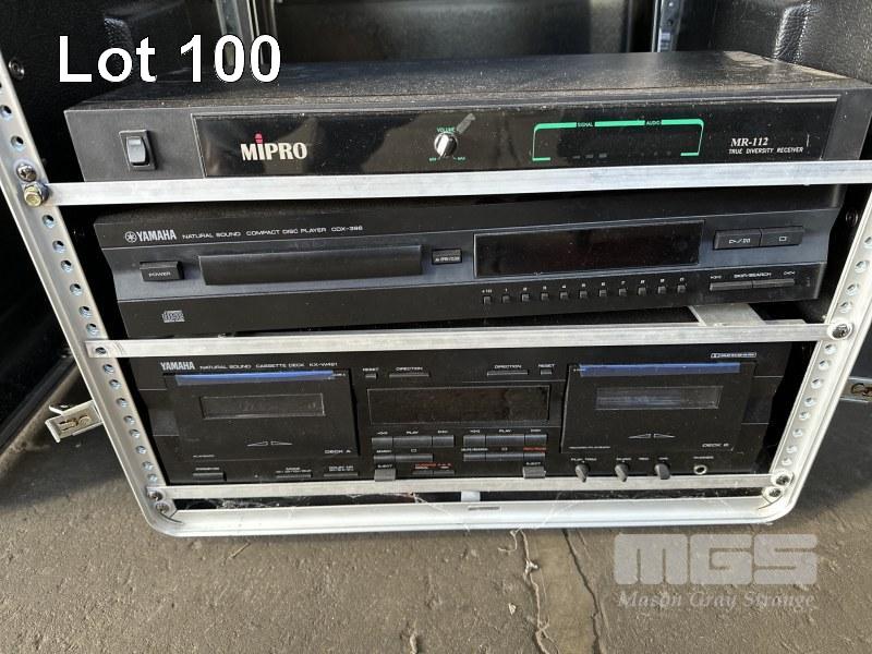 MIPRO WIRELESS RECEIVER, YAMAHA CD PLAYER CDX-396, YAMAHA CASSETTE DECK KX-W421 WITH GATOR RACKMOUNT CASE