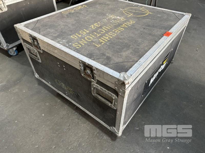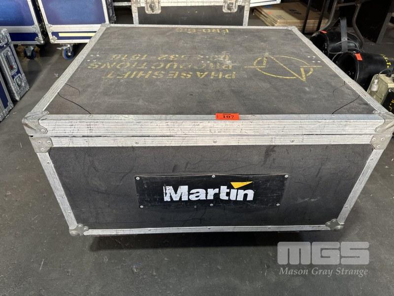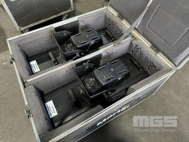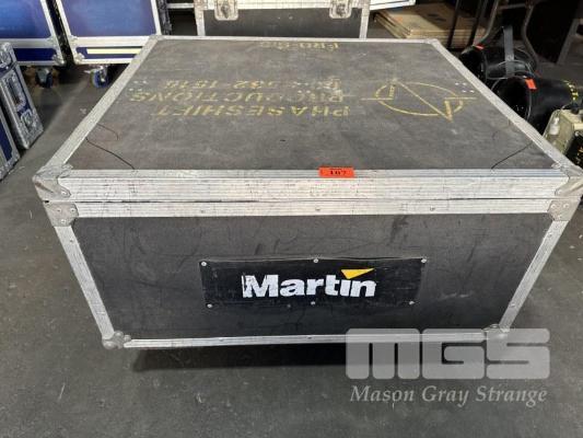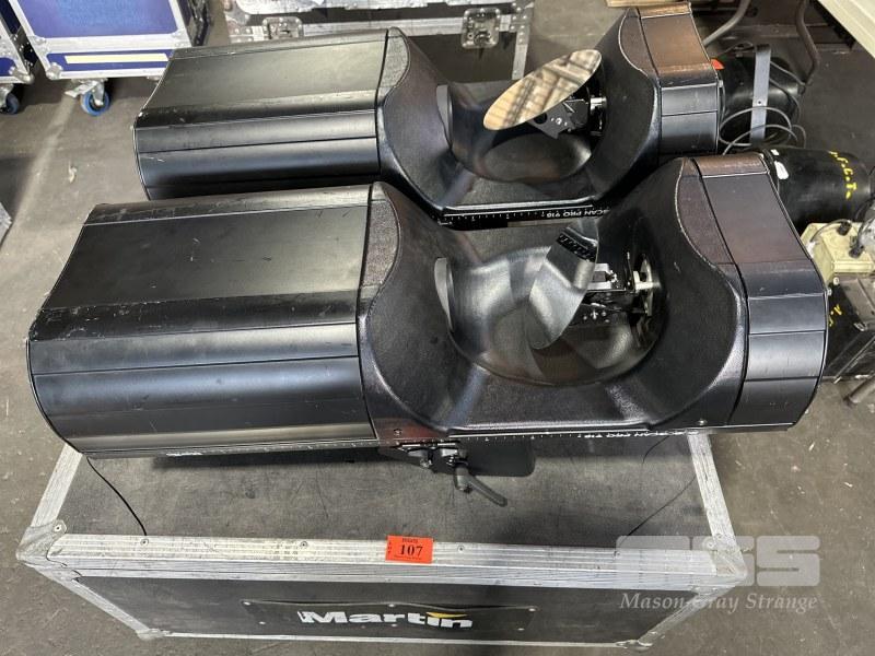 2 x MARTIN ROBOSCAN PRO 918 MOVING MIRROR LIGHTS WITH MOBILE ROAD CASE, 91 x 83 x 45cm
