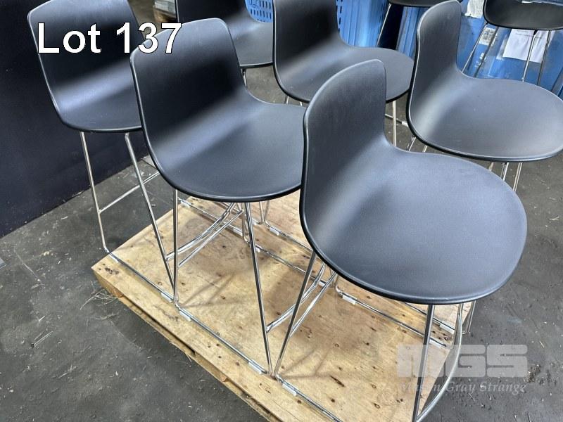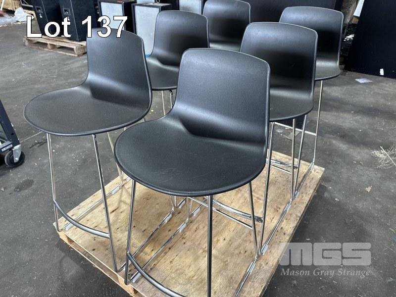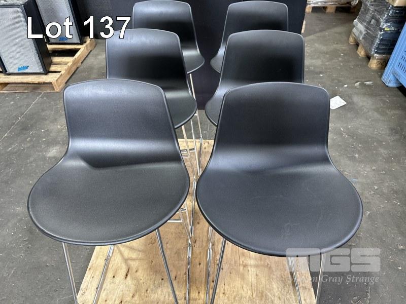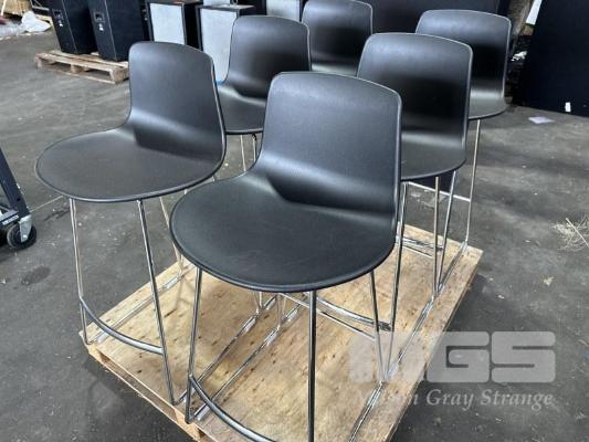 6 x ENEA LOTTUS BARSTOOLS, BLACK PLASTIC, CHROME FRAME