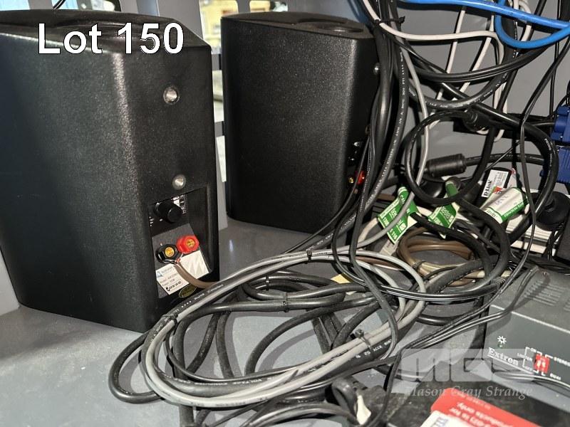 MOBILE CABINET WITH EIKI LC-XB200 DATA PROJECTOR, AUSTRALIAN MONITOR AM30WS SPEAKERS, KRAMER SWITCHER, EXTRON POWER AMPLIFIER, D-LINK SWITCH