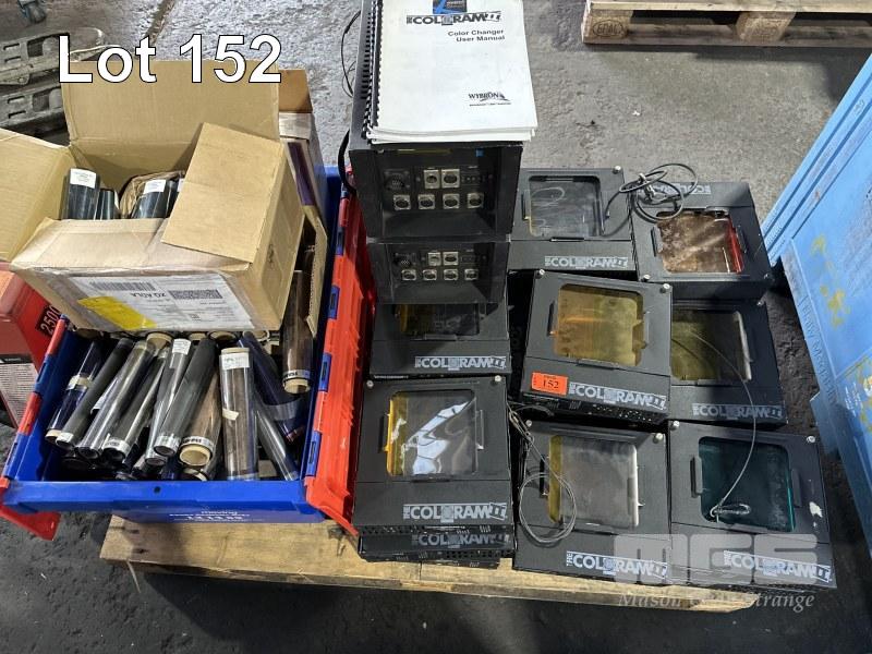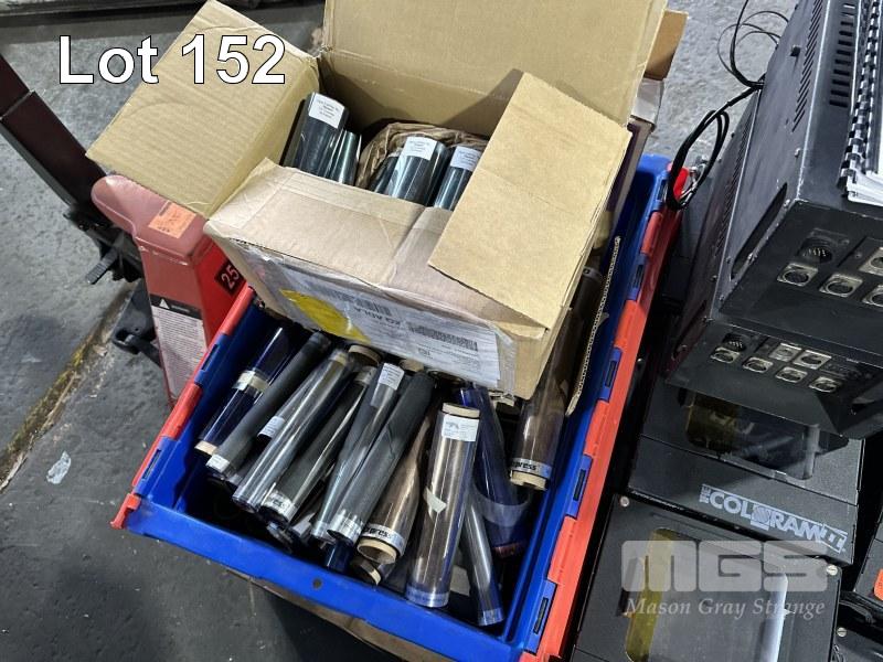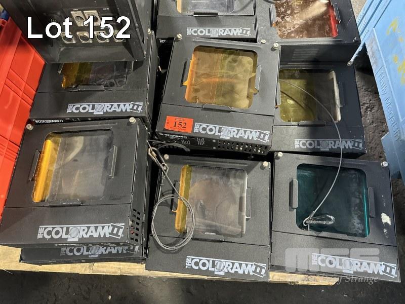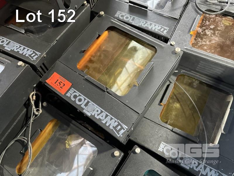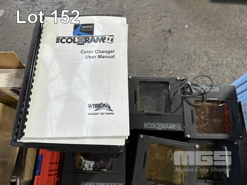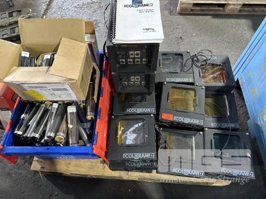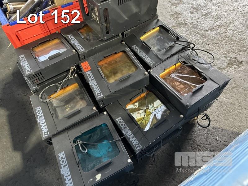 24 x THE COLORAM II SCROLLIGN LIGHTS, 2 x POWER SUPPLIES, TUB OF COLOUR SCROLLER SPARES