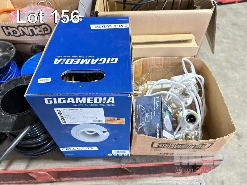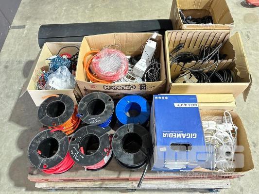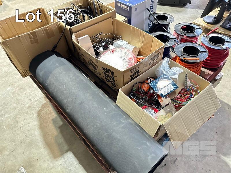 1 x PALLET LOT ASST CABLES, PART ROLLS, PLAIN COPPER CONDUCTOR, ELECTRICAL CABLE, CAT6, SOLAREDGE P1100 COMMERCIAL POWER OPTIMISERS, RUBBER MAT ETC