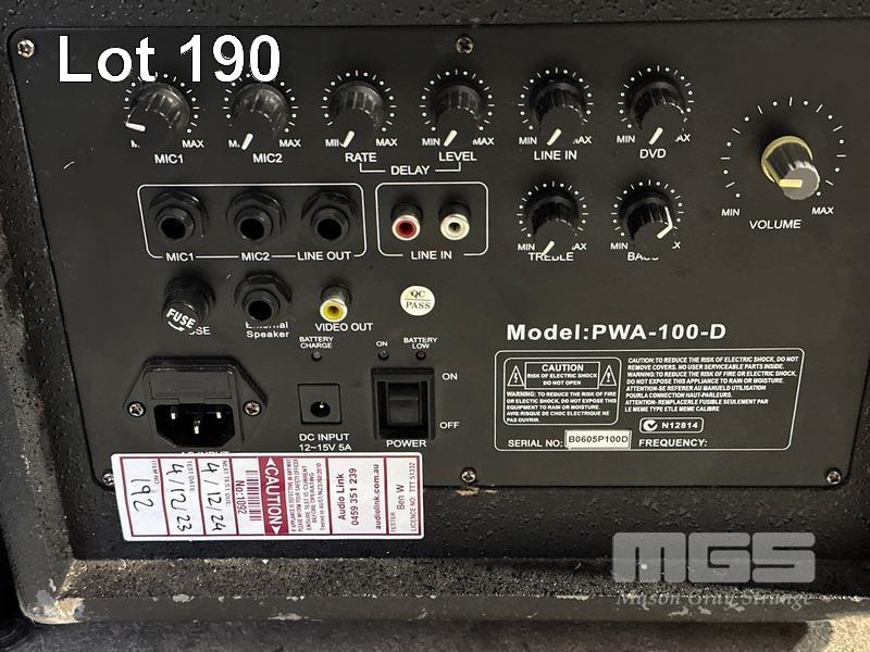 SOUNDART COMPACT WIRELESS PA SYSTEM, PWA-100-D WITH HANDHELD MICROPHONE