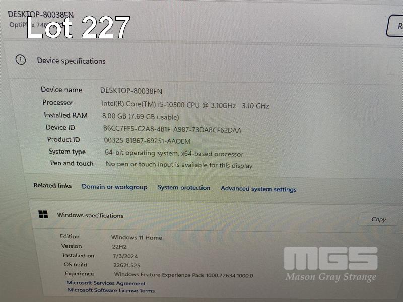 ALL-IN-ONE PC, DELL OPTIPLEX 7480, CORE i5 10500 (10TH GEN) @ 3.1GHz, 8GB DDR4 RAM, 512GB NVMe M.2 SSD, INBUILT 23.8" FHD WIDESCREEN (1920x1080), INTEL HD VIDEO, WEBCAM, 5 x USB, 1 x USB-C, WINDOWS 11 HOME INSTALLED, KEYBOARD & MOUSE S/N:DB0GX53