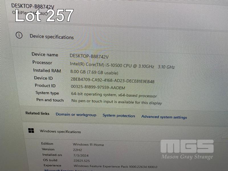 ALL-IN-ONE PC, DELL OPTIPLEX 7480, CORE i5 10500 (10TH GEN) @ 3.1GHz, 8GB DDR4 RAM, 512GB NVMe M.2 SSD, INBUILT 23.8" FHD WIDESCREEN (1920x1080), INTEL HD VIDEO, WEBCAM, 5 x USB, 1 x USB-C, WINDOWS 11 HOME INSTALLED, KEYBOARD & MOUSE S/N:4Y09X63