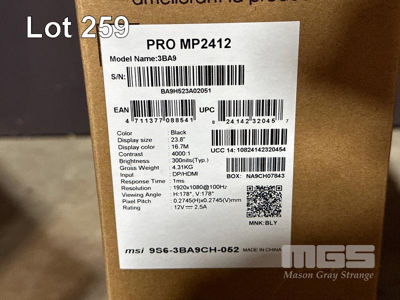 MONITOR, MSI PRO MP2412 SERIES 23.8" LCD WIDESCREEN, HDMI, DISPLAYPORT (DOM 2023)