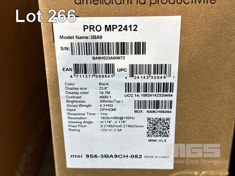 MONITOR, MSI PRO MP2412 SERIES 23.8" LCD WIDESCREEN, HDMI, DISPLAYPORT (DOM 2023)