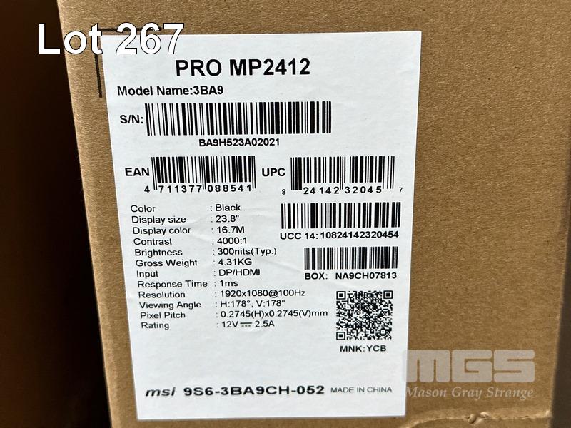 MONITOR, MSI PRO MP2412 SERIES 23.8" LCD WIDESCREEN, HDMI, DISPLAYPORT (DOM 2023)