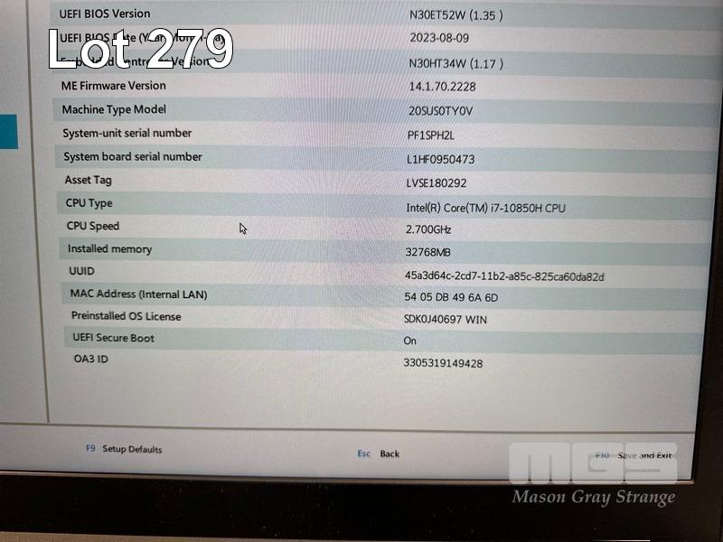 LAPTOP, LENOVO THINKPAD P15 GEN 1 MOBILE WORKSTATION, TYPE 20SU, CORE i7 10850H (10TH GEN) @ 2.7GHz, 32GB DDR4 RAM, 500GB NVMe M.2 SSD, 15.6" WIDESCREEN (1920x1080), 4GB NVIDIA QUADRO T2000 VIDEO, Wi-Fi, BLUETOOTH, WINDOWS 11 PRO INSTALLED & POWER SUPPLY (NOTE: MARKS ON SCREEN) S/N:PF1SPH2L