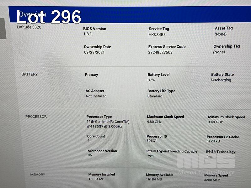 LAPTOP, DELL LATITUDE 5320, CORE i7 1185G7 (11TH GEN) @ 3GHz, 16GB DDR4 RAM, 256GB NVMe M.2 SSD, 13.3" TOUCHSCREEN (1920x1080), INTEL IRIS Xe GRAPHICS, Wi-Fi, BLUETOOTH, WINDOWS 11 PRO INSTALLED & USB-C POWER SUPPLY (NOTE: MINOR MARKS ON SCREEN) S/N:HKKS4B3