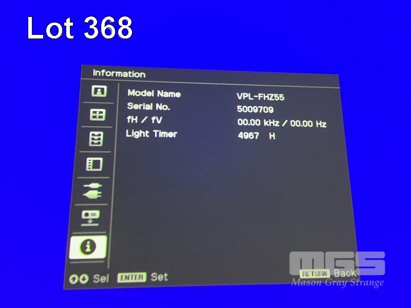 LASER PROJECTOR, SONY VPL-FHZ55 WUXGA 3LCD, 4,000 LUMENS, 4,967 HOURS SHOWING WITH REMOTE S/N:5009709