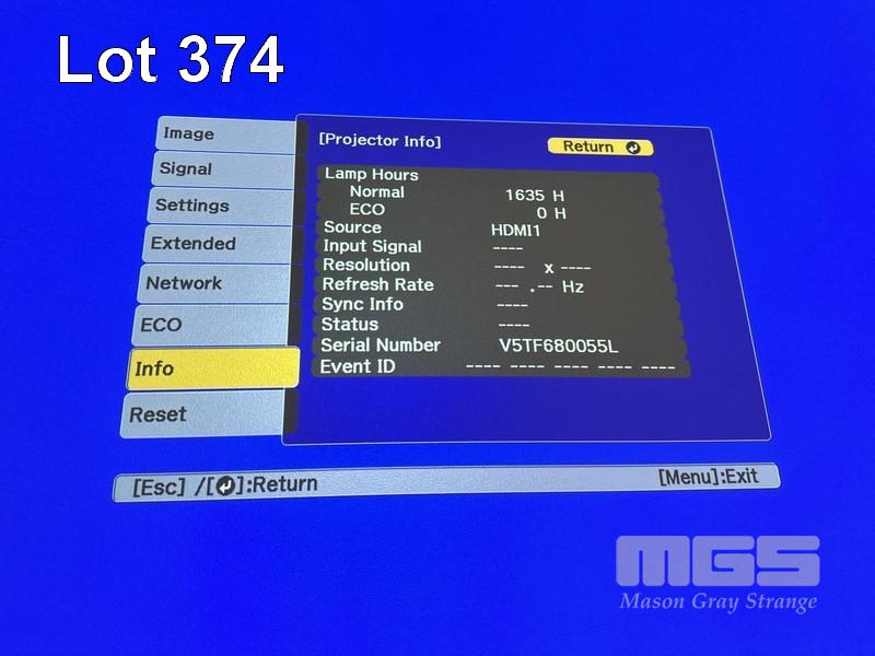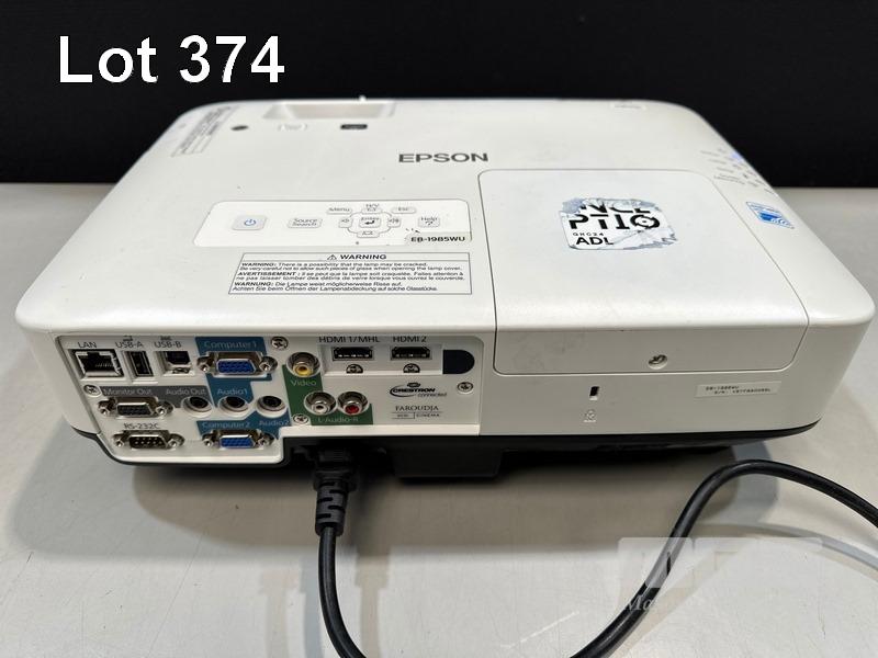 PROJECTOR, EPSON EB-1985WU 3LCD, 4,800 LUMENS, 1,635 HOURS SHOWING WITH REMOTE S/N:V5TF680055L
