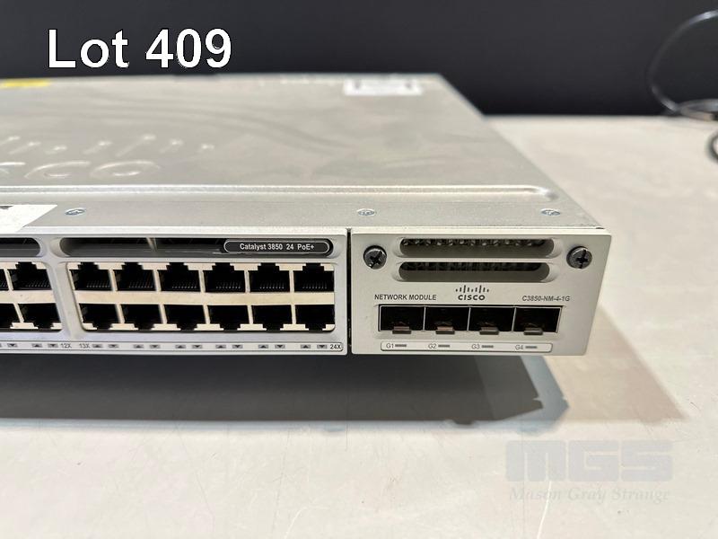 CISCO CATALYST 3850 24 PoE+ 24-PORT SWITCH, WS-C3850-24P-S V02 C3850-NM-4-1G NETWORK MODULE, 2 x PWR-C1-440WDC PSU (TERMINAL BLOCK) S/N:FOC1747U0G1