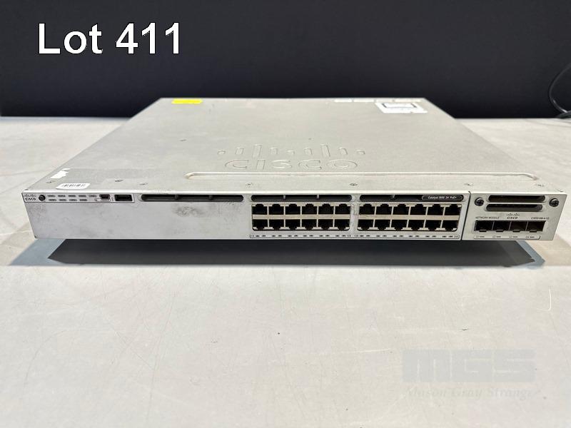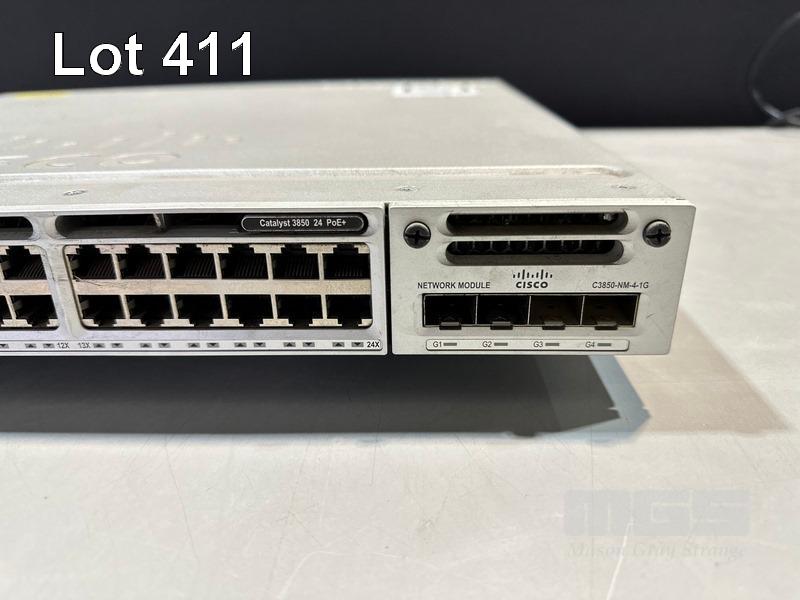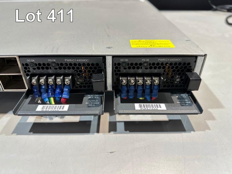 CISCO CATALYST 3850 24 PoE+ 24-PORT SWITCH, WS-C3850-24P-S V02 C3850-NM-4-1G NETWORK MODULE, 2 x PWR-C1-440WDC PSU (TERMINAL BLOCK) S/N:FOC1743U1NS