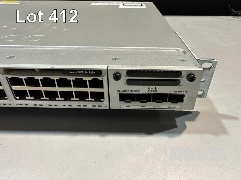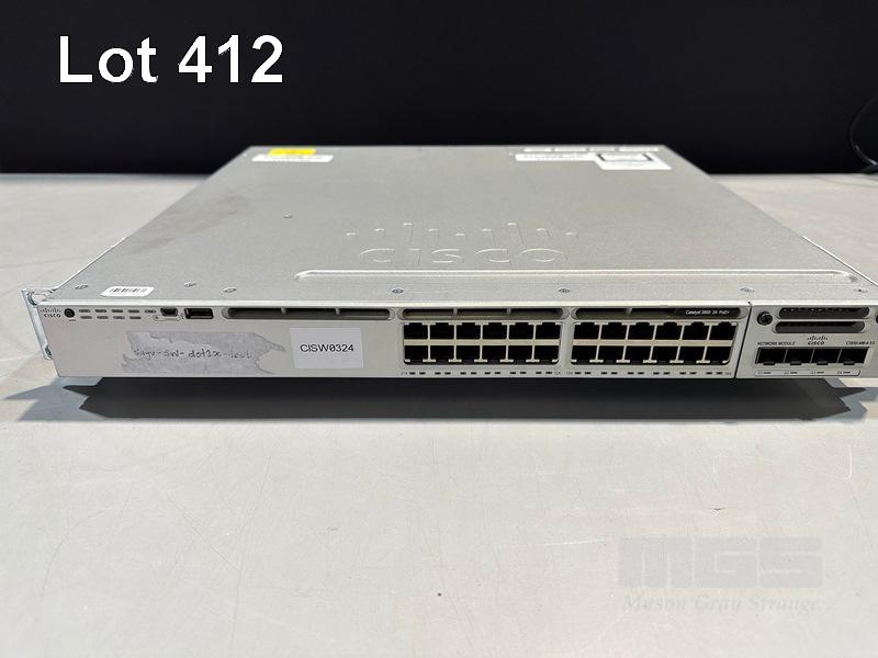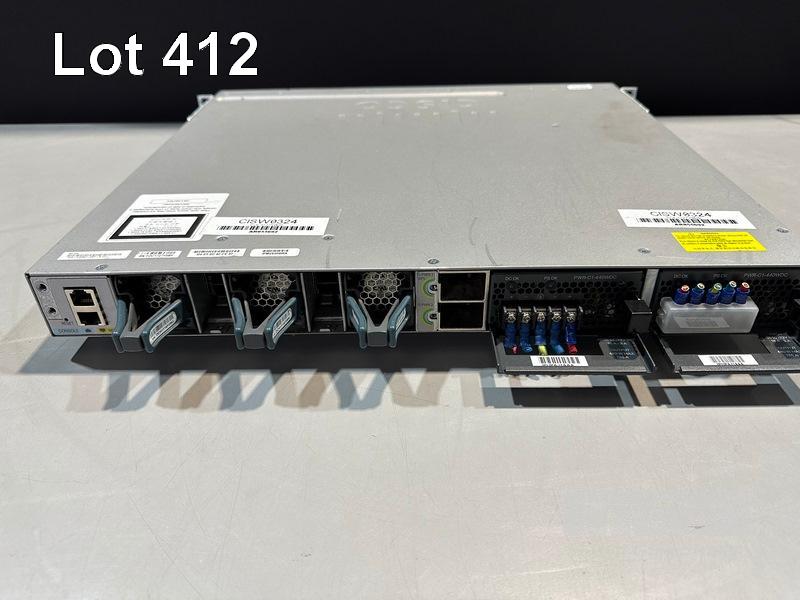 CISCO CATALYST 3850 24 PoE+ 24-PORT SWITCH, WS-C3850-24P-S V01 C3850-NM-4-1G NETWORK MODULE, 2 x PWR-C1-440WDC PSU (TERMINAL BLOCK) S/N:FOC1727Y0B9
