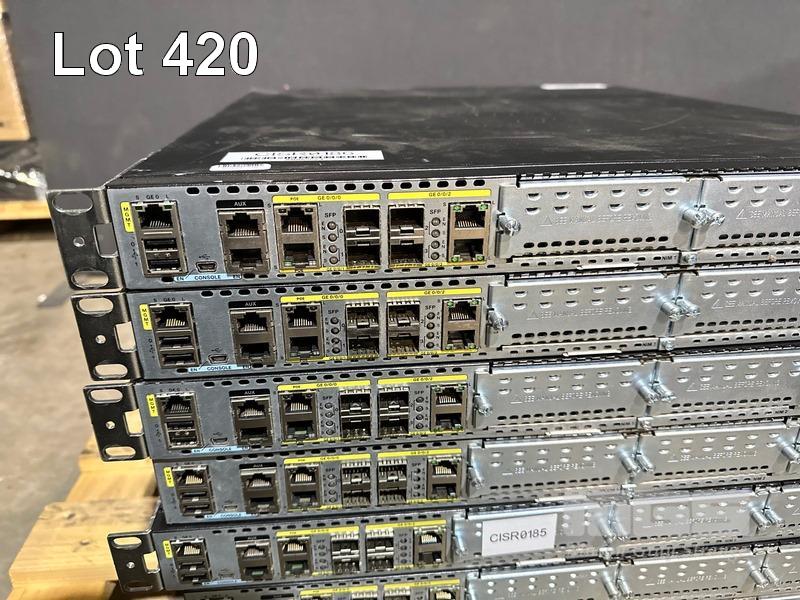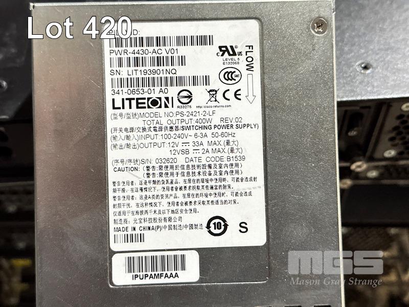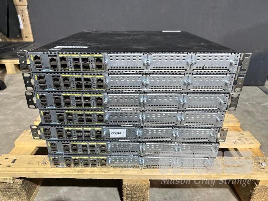 7 x CISCO 4400 SERIES INTEGRATED SERVICES ROUTERS, ISR4431/K9 V01 MOST WITH 2 x PWR-4430-DC PSU (TERMINAL BLOCK) (NOTE: MISSING FRONT PANELS) S/N:FGL19521131, FGL19521127, FGL1952112A, FGL1952112E, FGL19521130, FGL1952112N, FGL1952117Z