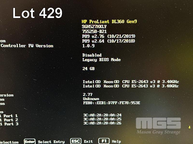 RACKMOUNT SERVER, HP PROLIANT DL360 Gen9, 1U, 2 x XEON E5-2643 v3 @ 3.4GHz, 24GB ECC DDR4 RAM, 8 x 300GB SAS HDD, 2 x PSU (NO CABLES) (NOTE: MEMORY ERROR ON DIMM 1) S/N:SGH527XKLY