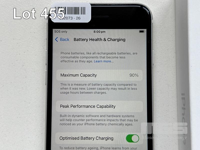APPLE iPHONE SE, 128GB, WHITE, MODEL MHGU3X/A, A2296, BATTERY HEALTH 90% (NO CABLE, NO CHARGER) S/N:FFMH326QPLK3