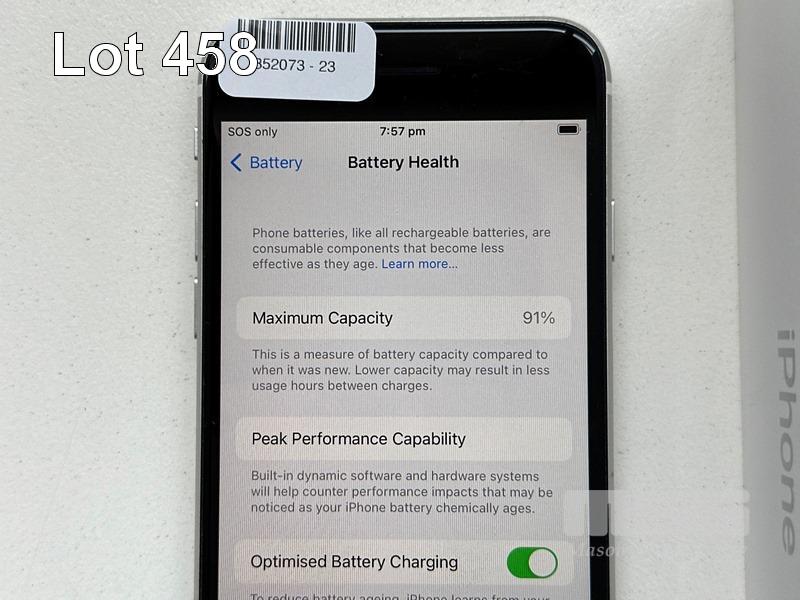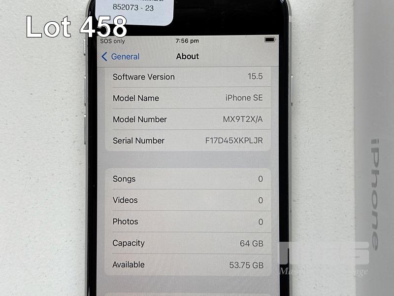 APPLE iPHONE SE, 64GB, WHITE, MODEL MX9T2X/A, A2296, BATTERY HEALTH 91% (NO CABLE, NO CHARGER) S/N:F17D45XKPLJR