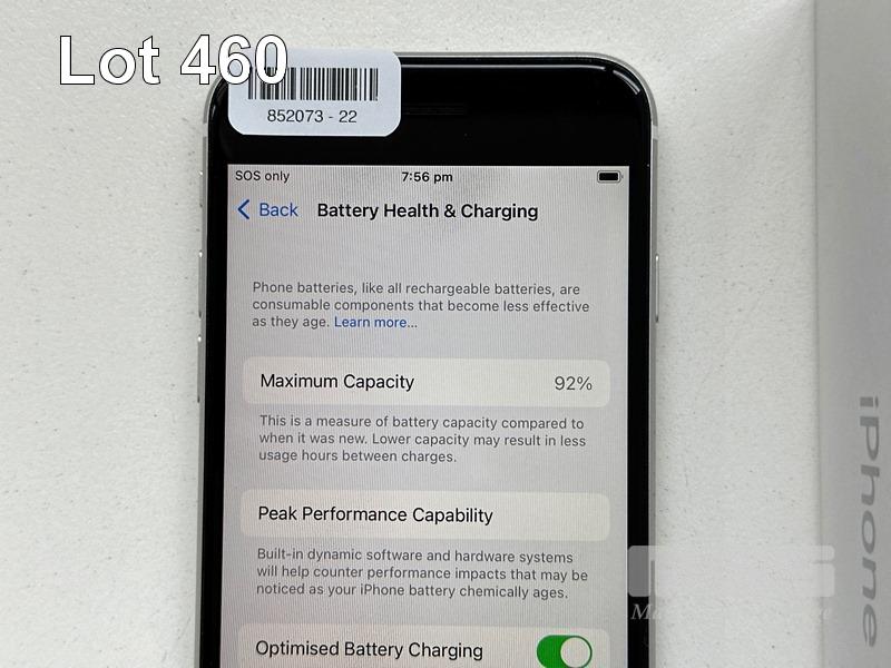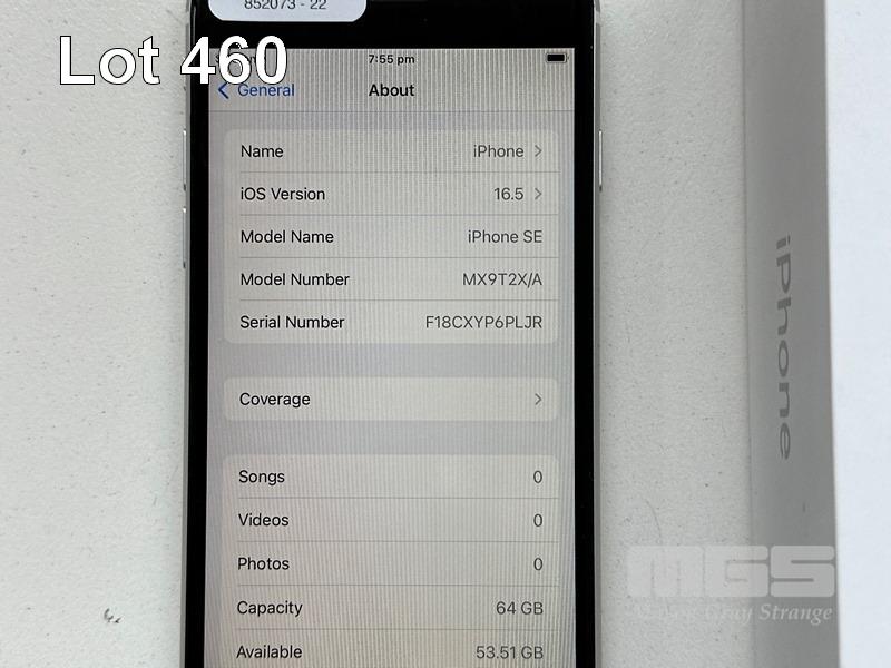 APPLE iPHONE SE, 64GB, WHITE, MODEL MX9T2X/A, A2296, BATTERY HEALTH 92% (NO CABLE, NO CHARGER) S/N:F18CXYP6PLJR