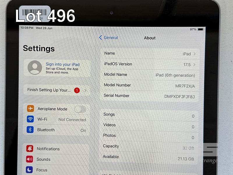 APPLE iPAD 6TH GEN, 32GB, Wi-Fi, SPACE GREY, MODEL MR7F2X/A, A1893 (NO CABLE, NO CHARGER) S/N:DMPXDFJFJF8J