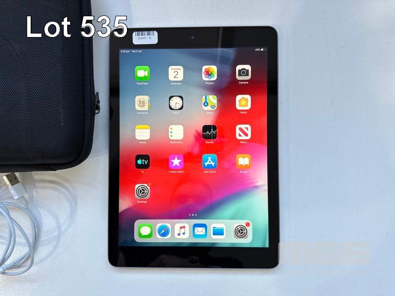 APPLE iPAD AIR, 16GB, Wi-Fi, SPACE GREY, MD785X/A, MODEL A1474 WITH CABLE, CHARGER & CARRY CASE S/N:DLXLW2K3FK10