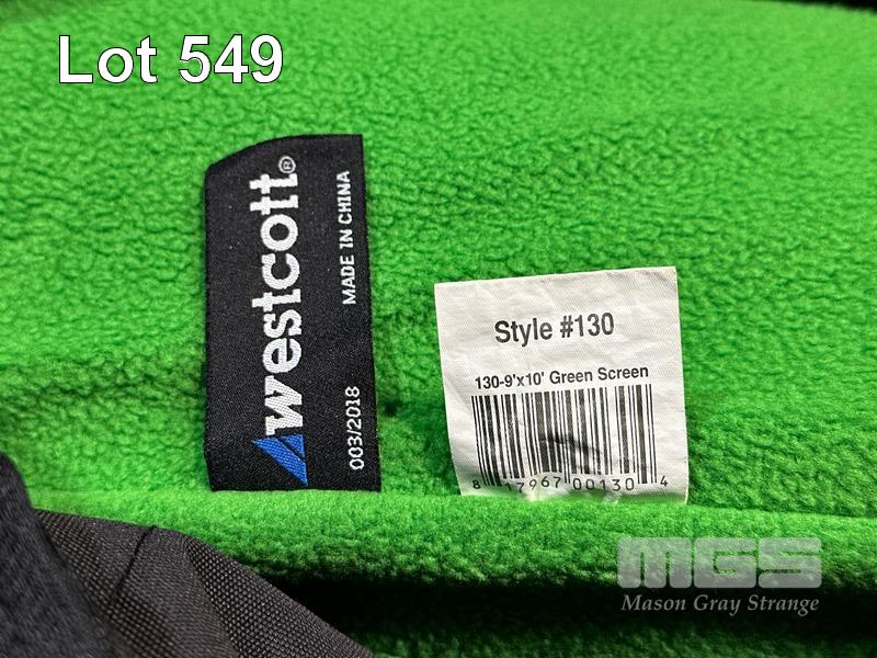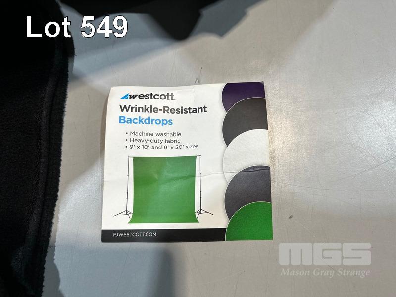 WESTCOTT BACKDROPS INC. STYLE #130, 9'x10' GREEN SCREEN STYLE #134, 9'x10' HIGH KEY WHITE UNKNOWN SIZE, BLACK (NO STANDS)