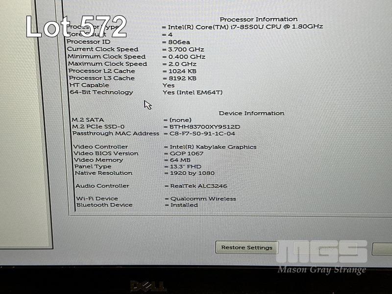 LAPTOP, DELL XPS 13 9360, CORE i7 8550U (8TH GEN) @ 1.8GHz, 16GB DDR3 RAM, 512GB NVMe M.2 SSD, 13.3" WIDESCREEN (1920x1080), Wi-Fi, BLUETOOTH, WINDOWS 11 PRO INSTALLED & POWER SUPPLY S/N:66CBST2