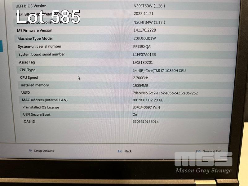 LAPTOP, LENOVO THINKPAD P15 GEN 1 MOBILE WORKSTATION, TYPE 20SU, CORE i7 10850H (10TH GEN) @ 2.7GHz, 16GB DDR4 RAM, 512GB NVMe M.2 SSD, 15.6" WIDESCREEN (1920x1080), 4GB NVIDIA QUADRO T2000 VIDEO, Wi-Fi, BLUETOOTH, WINDOWS 11 PRO INSTALLED & POWER SUPPLY (NOTE: MINOR MARKS ON SCREEN) S/N:PF1SRXQA
