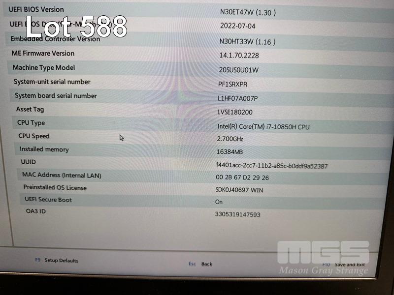 LAPTOP, LENOVO THINKPAD P15 GEN 1 MOBILE WORKSTATION, TYPE 20SU, CORE i7 10850H (10TH GEN) @ 2.7GHz, 16GB DDR4 RAM, 512GB NVMe M.2 SSD, 15.6" WIDESCREEN (1920x1080), 4GB NVIDIA QUADRO T2000 VIDEO, Wi-Fi, BLUETOOTH, WINDOWS 11 PRO INSTALLED & POWER SUPPLY (NOTE: MARKS ON SCREEN) S/N:PF1SRXPR