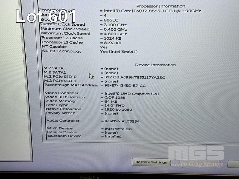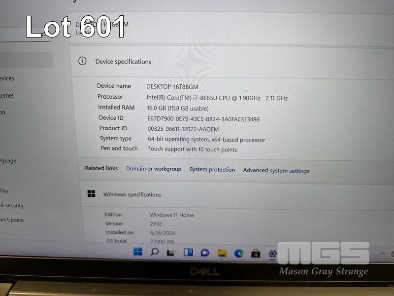 LAPTOP, DELL LATITUDE 7400, CORE i7 8665U (8TH GEN) @ 1.9GHz, 16GB DDR4 RAM, 512GB NVMe M.2 SSD, 14" WIDESCREEN (1920x1080), INTEL UHD GRAPHICS 620, Wi-Fi, BLUETOOTH, WINDOWS 11 HOME INSTALLED & POWER SUPPLY (NOTE: RUBBER PAD MISSING ON BOTTOM OF LAPTOP, MINOR MARKS ON SCREEN) S/N:6KMYYY2