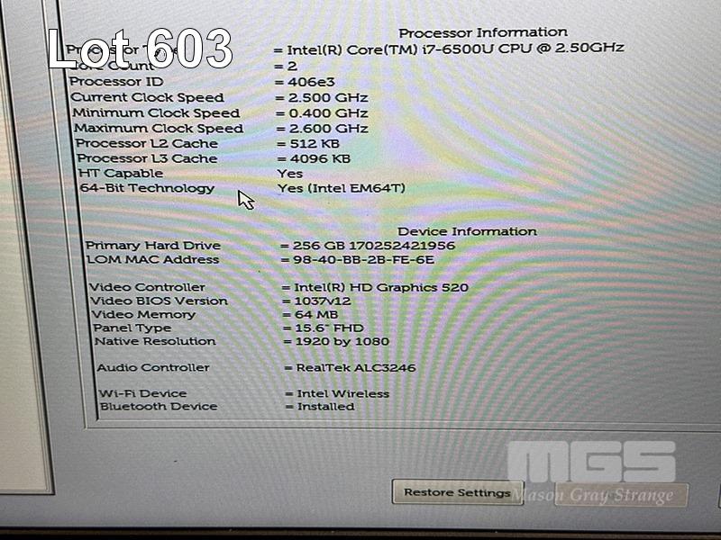 LAPTOP, DELL LATITUDE 3570, CORE i7 6500U (6TH GEN) @ 2.5GHz, 16GB DDR3 RAM, 256GB SSD, 15.6" WIDESCREEN (1920x1080), INTEL HD GRAPHICS 520, Wi-Fi, BLUETOOTH, WINDOWS 10 PRO INSTALLED, POWER SUPPLY & CARRY BAG S/N:1H651F2