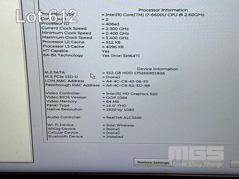 LAPTOP, DELL LATITUDE 7480, CORE i7 6600U (6TH GEN) @ 2.6GHz, 16GB DDR4 RAM, 512GB M.2 SSD, 14" WIDESCREEN (1920x1080), INTEL HD GRAPHICS 520, Wi-Fi, BLUETOOTH, WINDOWS 10 HOME INSTALLED & POWER SUPPLY (NOTE: BATTERY NOT HOLDING CHARGE) S/N:F5RVGH2