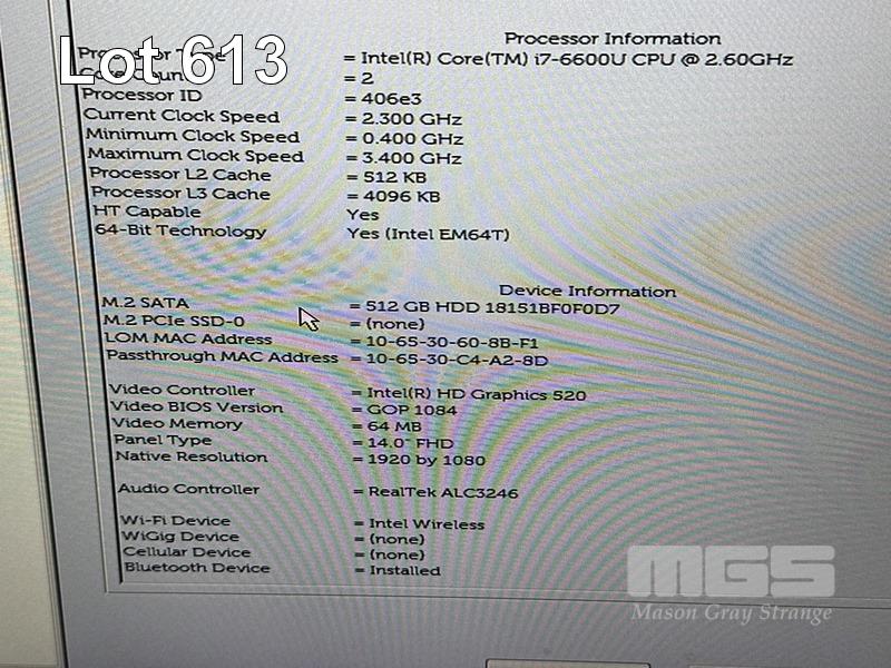 LAPTOP, DELL LATITUDE 7480, CORE i7 6600U (6TH GEN) @ 2.6GHz, 8GB DDR4 RAM, 512GB M.2 SSD, 14" WIDESCREEN (1920x1080), INTEL HD GRAPHICS 520, Wi-Fi, BLUETOOTH, WINDOWS 10 HOME INSTALLED & POWER SUPPLY (NOTE: BATTERY NOT HOLDING CHARGE) S/N:9TXCVP2