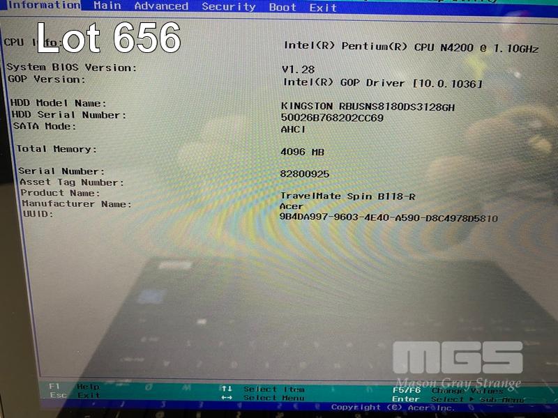 LAPTOP, ACER TRAVELMATE SPIN B118-R, PENTIUM N4200 @ 1.1GHz, 4GB RAM, 128GB M.2 SSD, 11.6" TOUCHSCREEN (1366x768), Wi-Fi, BLUETOOTH, WINDOWS 11 PRO EDUCATION INSTALLED & POWER SUPPLY (NOTE: BUBBLE MARKS ON SCREEN) S/N:82800925