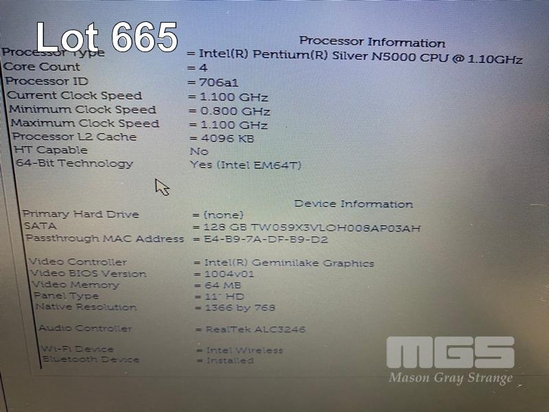 LAPTOP, DELL LATITUDE 3190, PENTIUM SILVER N5000 @ 1.1GHz, 4GB DDR4 RAM, 128GB M.2 SSD, 11.6" WIDESCREEN (1366x768), INTEL UHD GRAPHICS 605, Wi-Fi, BLUETOOTH, WINDOWS 11 PRO EDUCATION INSTALLED & POWER SUPPLY S/N:60L76S2