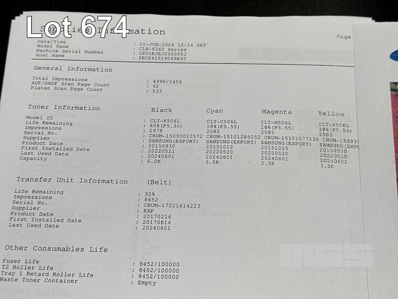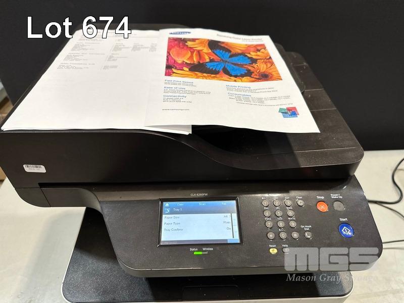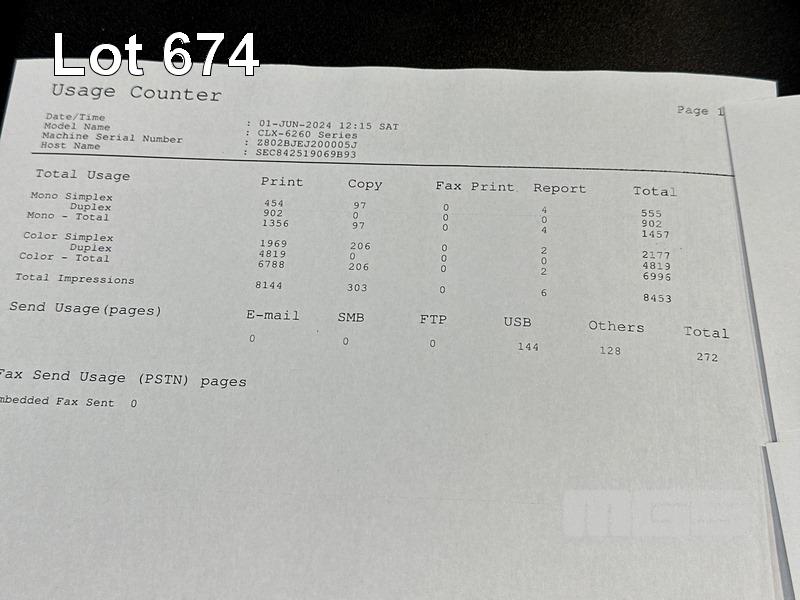 PRINTER, SAMSUNG CLX-6260FW MFC COLOUR LASER, USB, NETWORK, 6,996 COLOUR & 1,456 B&W PAGES (TEST PAGE ATTACHED) S/N:Z802BJEJ200005J