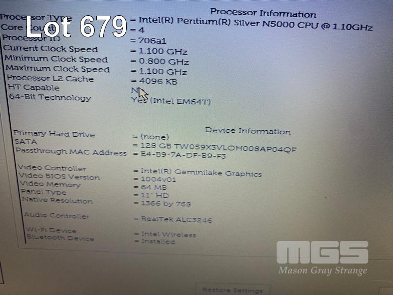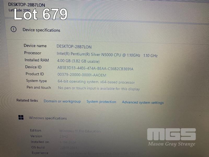 LAPTOP, DELL LATITUDE 3190, PENTIUM SILVER N5000 @ 1.1GHz, 4GB DDR4 RAM, 128GB M.2 SSD, 11.6" WIDESCREEN (1366x768), INTEL UHD GRAPHICS 605, Wi-Fi, BLUETOOTH, WINDOWS 11 PRO EDUCATION INSTALLED & POWER SUPPLY S/N:GVF76S2