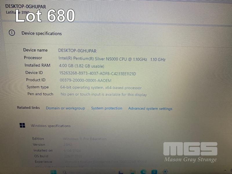 LAPTOP, DELL LATITUDE 3190, PENTIUM SILVER N5000 @ 1.1GHz, 4GB DDR4 RAM, 128GB M.2 SSD, 11.6" WIDESCREEN (1366x768), INTEL UHD GRAPHICS 605, Wi-Fi, BLUETOOTH, WINDOWS 11 PRO EDUCATION INSTALLED & POWER SUPPLY S/N:77K66S2