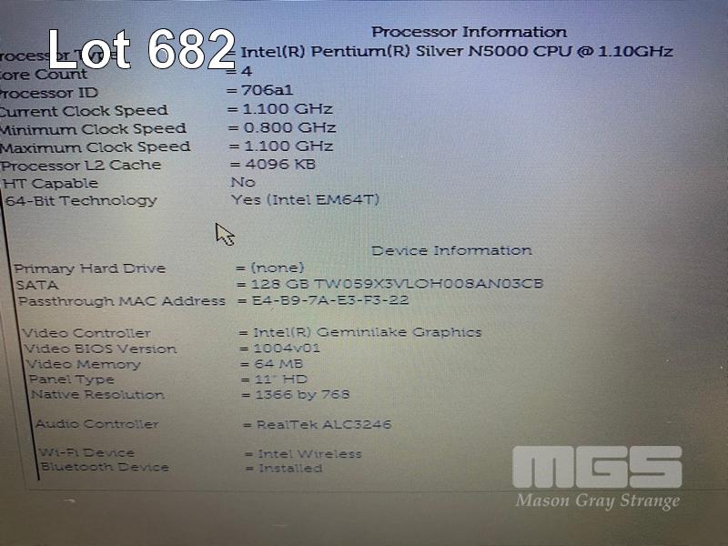 LAPTOP, DELL LATITUDE 3190, PENTIUM SILVER N5000 @ 1.1GHz, 4GB DDR4 RAM, 128GB M.2 SSD, 11.6" WIDESCREEN (1366x768), INTEL UHD GRAPHICS 605, Wi-Fi, BLUETOOTH, WINDOWS 11 PRO EDUCATION INSTALLED & POWER SUPPLY S/N:6RR66S2