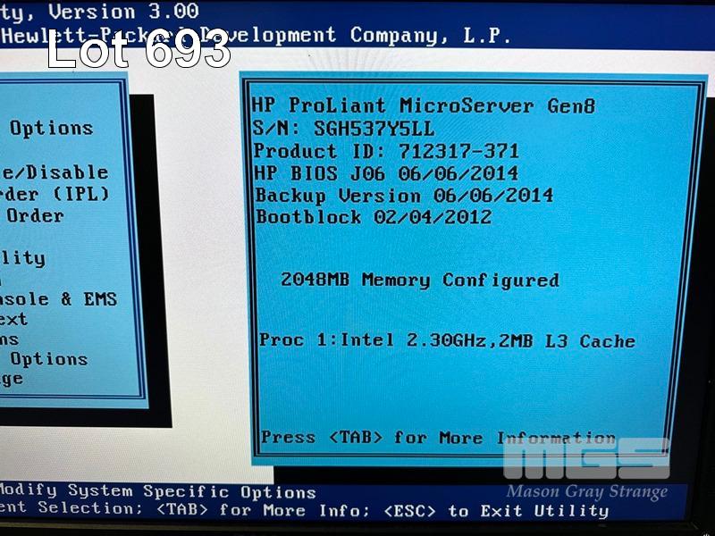 HP PROLIANT MICROSERVER Gen8, CELERON G1610T @ 2.3GHz, 2GB RAM, 4 x 2TB SATA HDD S/N:SGH537Y5LL