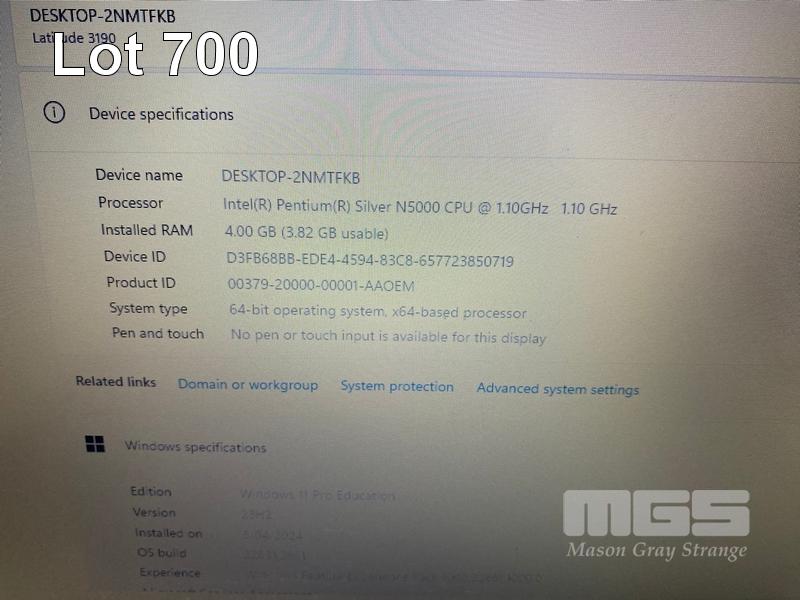 LAPTOP, DELL LATITUDE 3190, PENTIUM SILVER N5000 @ 1.1GHz, 4GB DDR4 RAM, 128GB M.2 SSD, 11.6" WIDESCREEN (1366x768), INTEL UHD GRAPHICS 605, Wi-Fi, BLUETOOTH, WINDOWS 11 PRO EDUCATION INSTALLED & POWER SUPPLY S/N:3JP56S2
