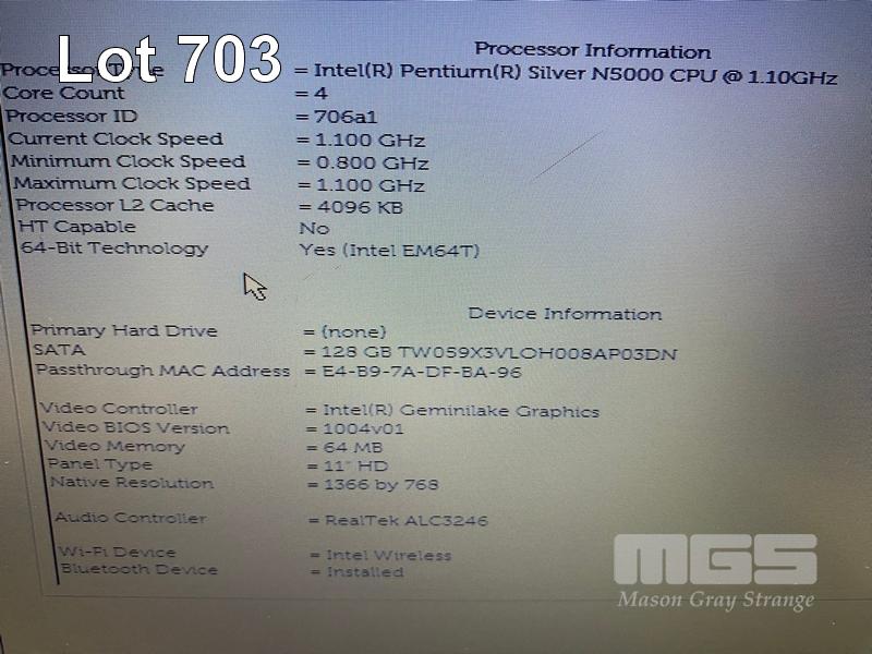LAPTOP, DELL LATITUDE 3190, PENTIUM SILVER N5000 @ 1.1GHz, 4GB DDR4 RAM, 128GB M.2 SSD, 11.6" WIDESCREEN (1366x768), INTEL UHD GRAPHICS 605, Wi-Fi, BLUETOOTH, WINDOWS 11 PRO EDUCATION INSTALLED & POWER SUPPLY (NOTE: SCRATCH ON SCREEN) S/N:DGH76S2