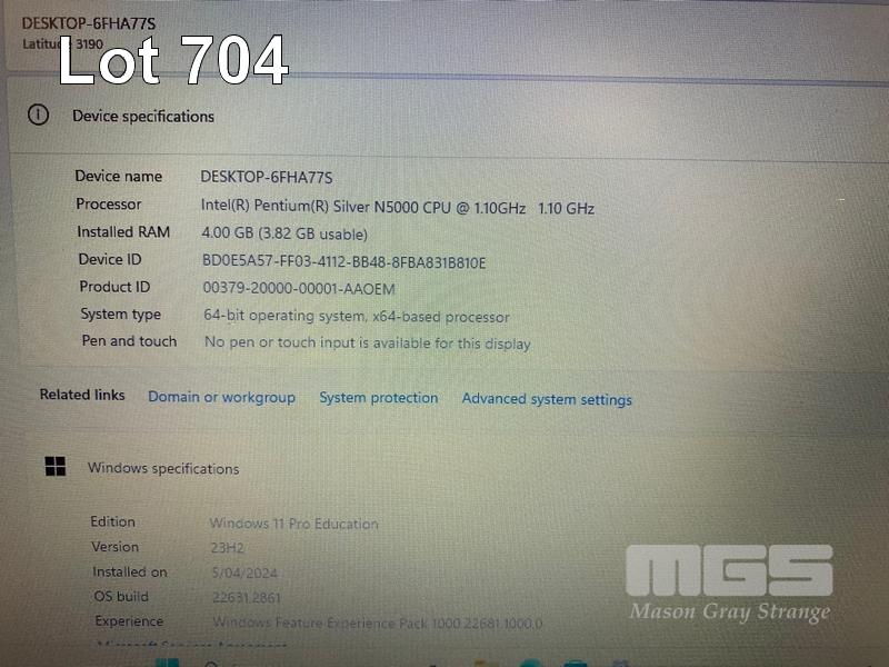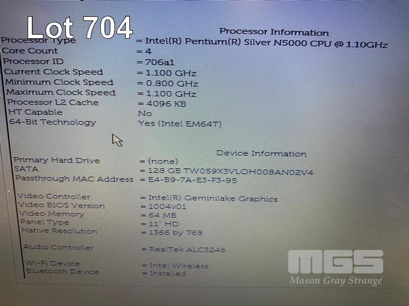 LAPTOP, DELL LATITUDE 3190, PENTIUM SILVER N5000 @ 1.1GHz, 4GB DDR4 RAM, 128GB M.2 SSD, 11.6" WIDESCREEN (1366x768), INTEL UHD GRAPHICS 605, Wi-Fi, BLUETOOTH, WINDOWS 11 PRO EDUCATION INSTALLED & POWER SUPPLY (NOTE: SCRATCH ON SCREEN) S/N:3KJ56S2