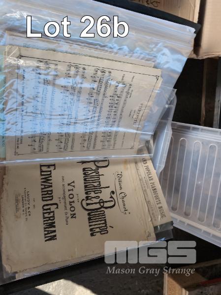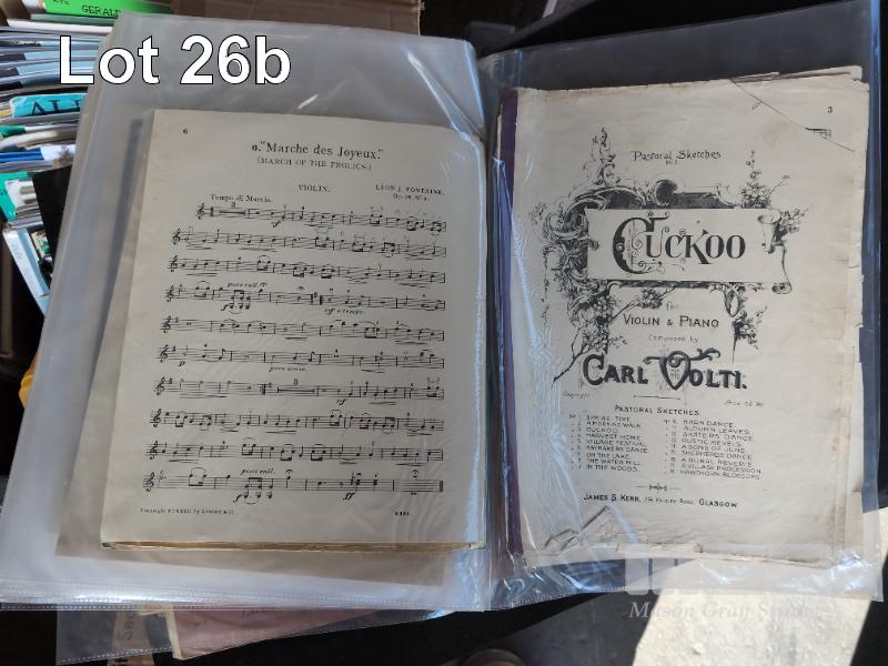 QUANTITY OF SHEET MUSIC, OLIN RECORD PLAYER AND A COLLECTION OF VINTAGE VIOLIN BOOKS ETC.