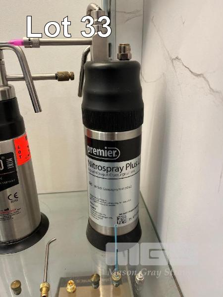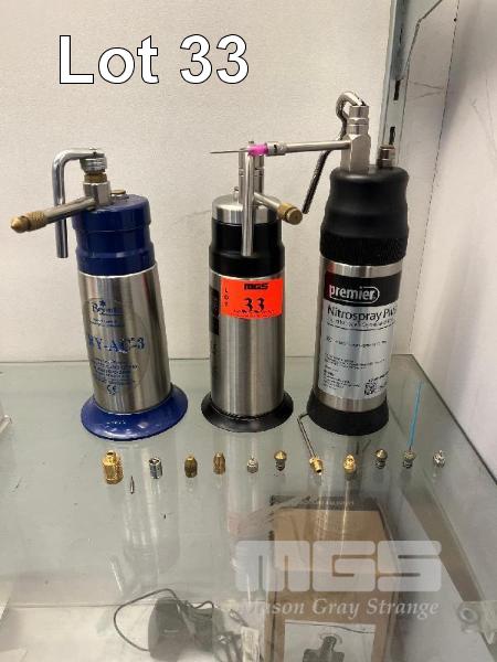 3 x LIQUID NITROGEN CRYOSURGICAL SPRAY UNITS WITH ASSORTED ATTACHMENTS BRYMILL, CRYO PRO MINI & PREMIER